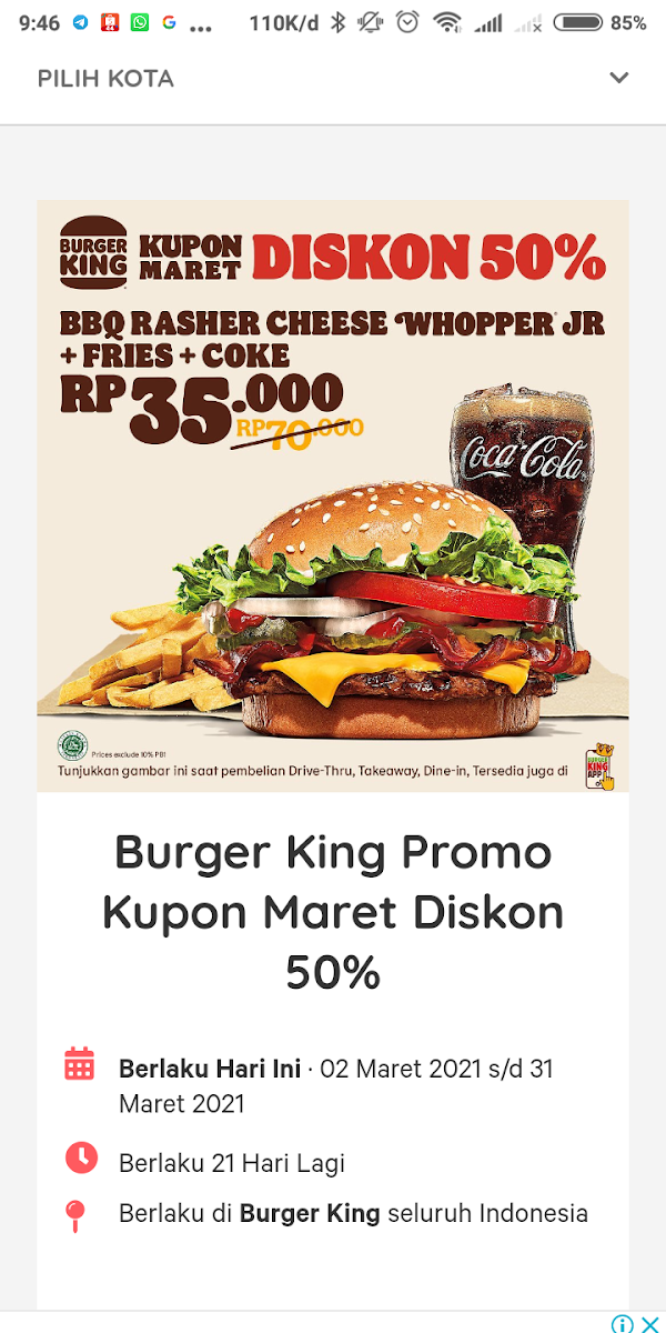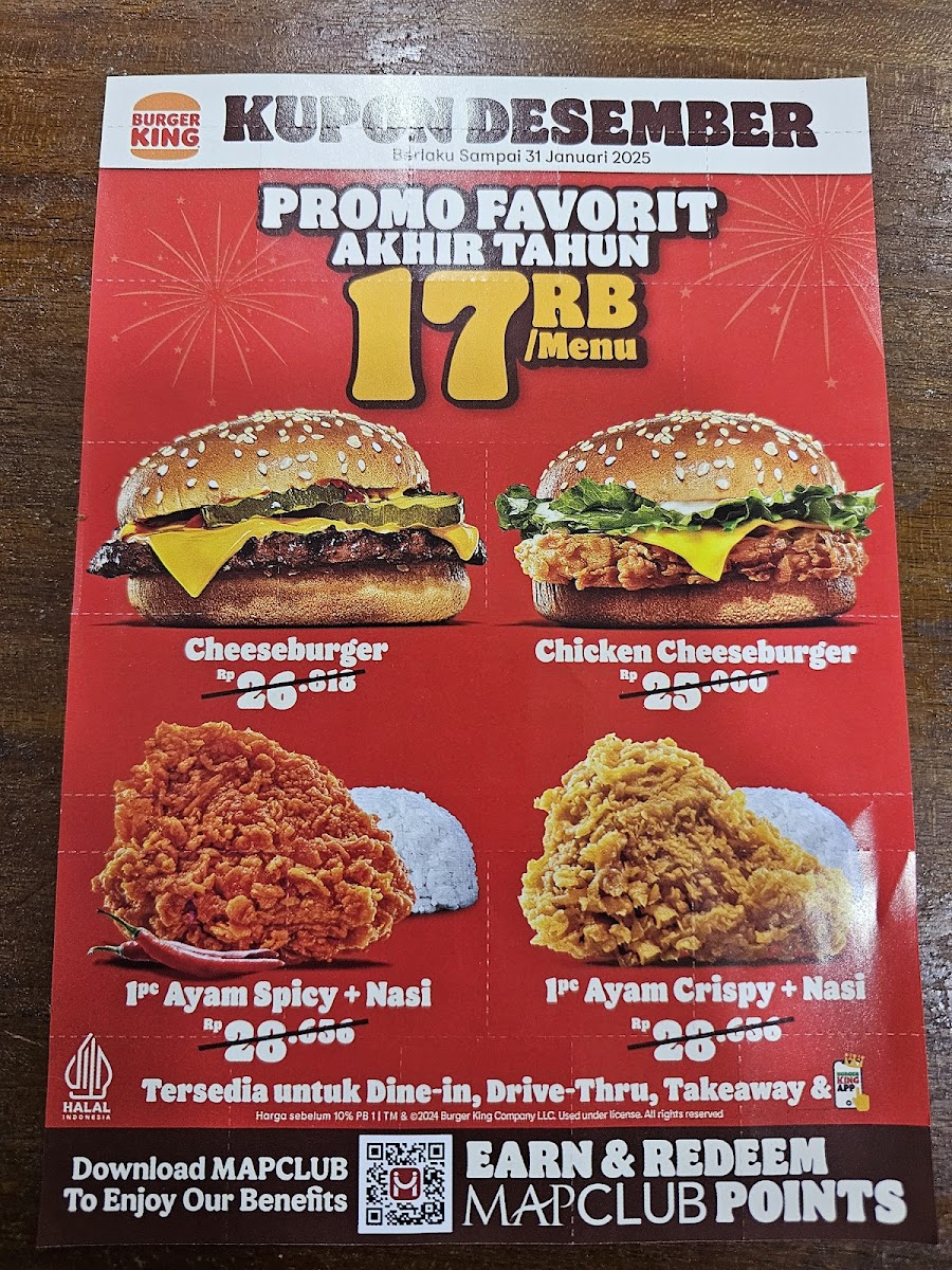 Welcome to Burger King Jogja City Mall, a delightful fast-food oasis located on the ground floor of the bustling Jogja City Mall. Known for its enticing menu, Burger King offers a range of options that cater to every palate. Customers rave about the Cheese Burger Kings Deal, featuring a mouthwatering cheeseburger, crispy French fries, and a refreshing soft drink, all for just IDR 27,500.